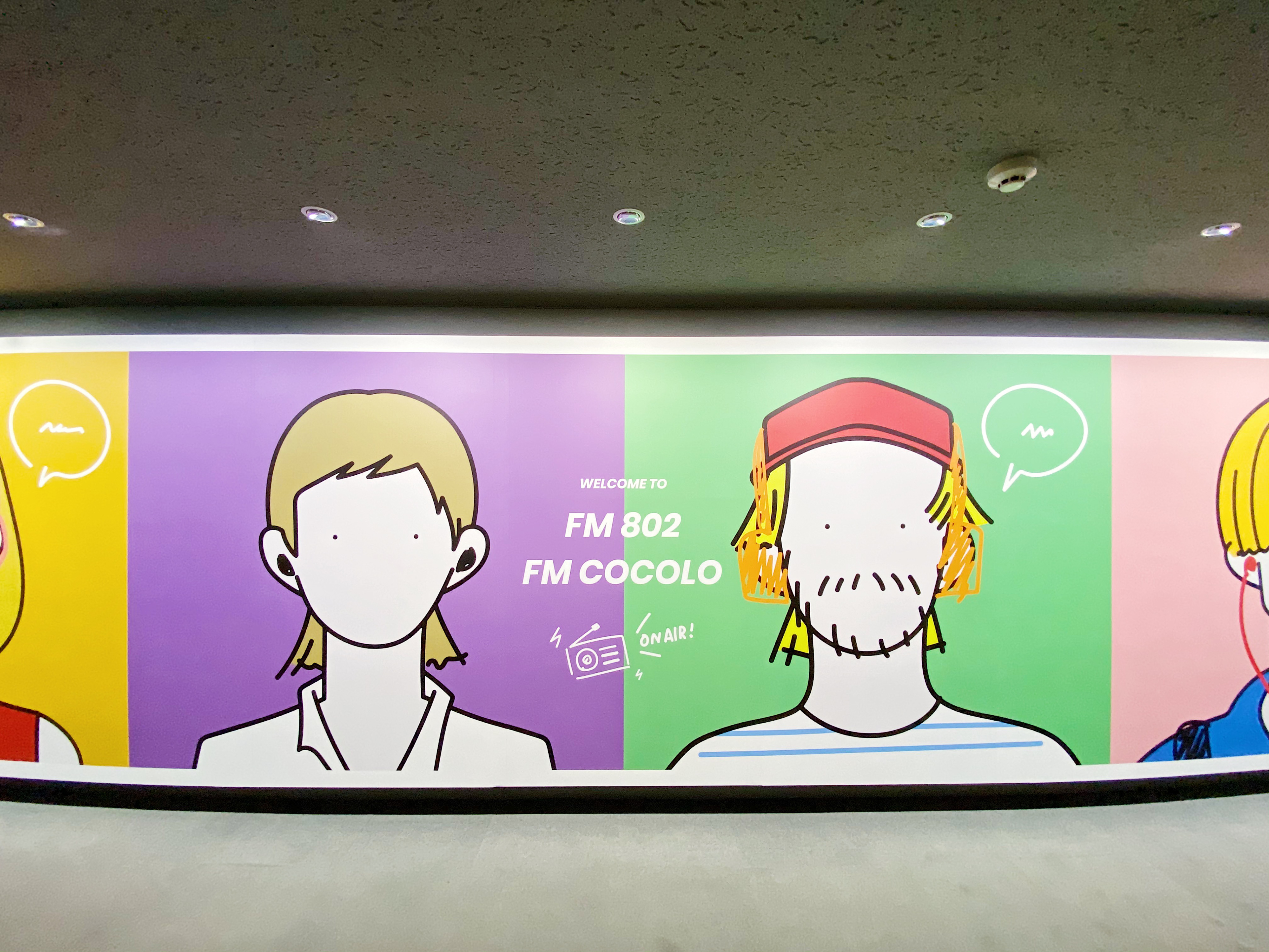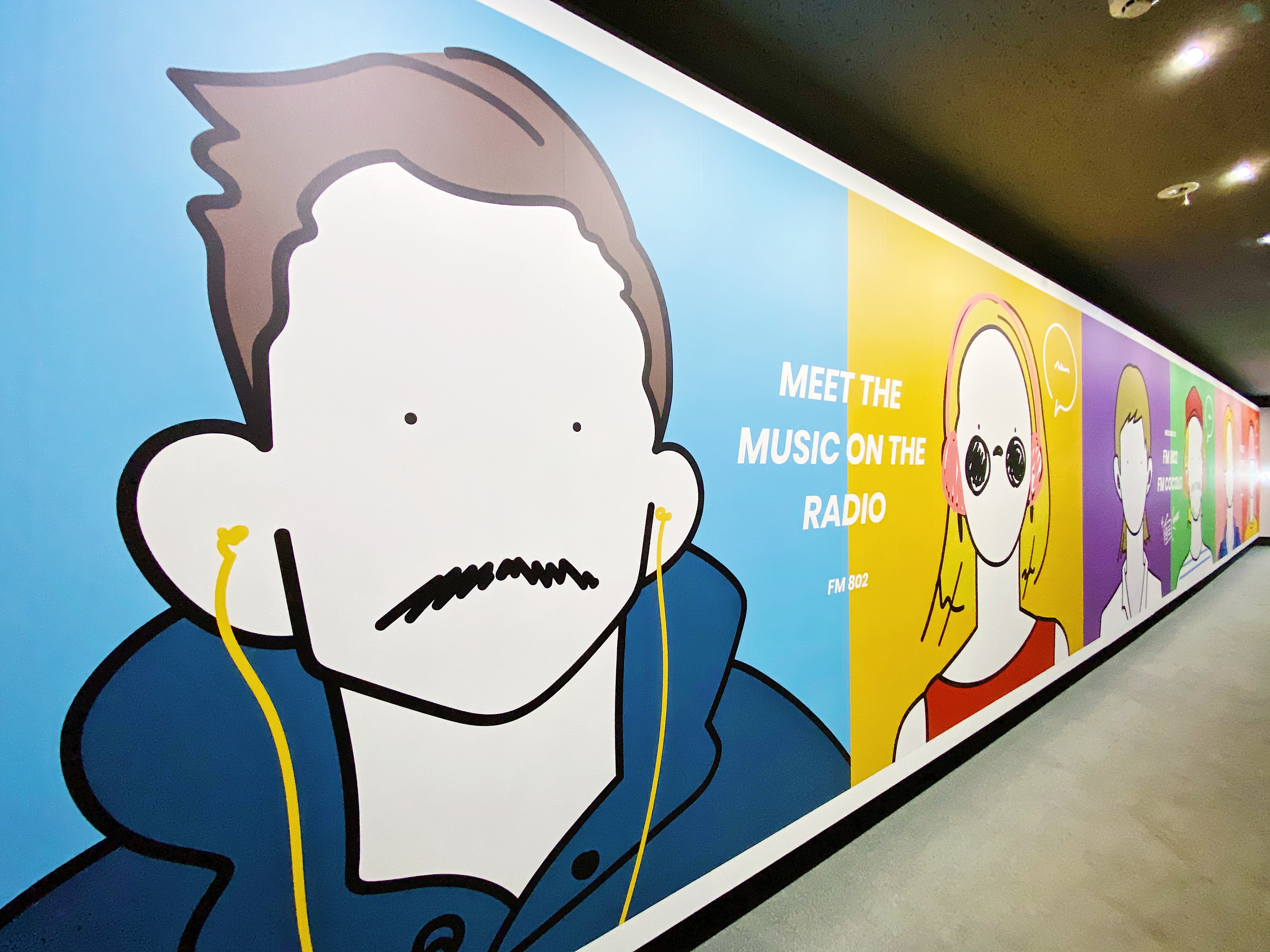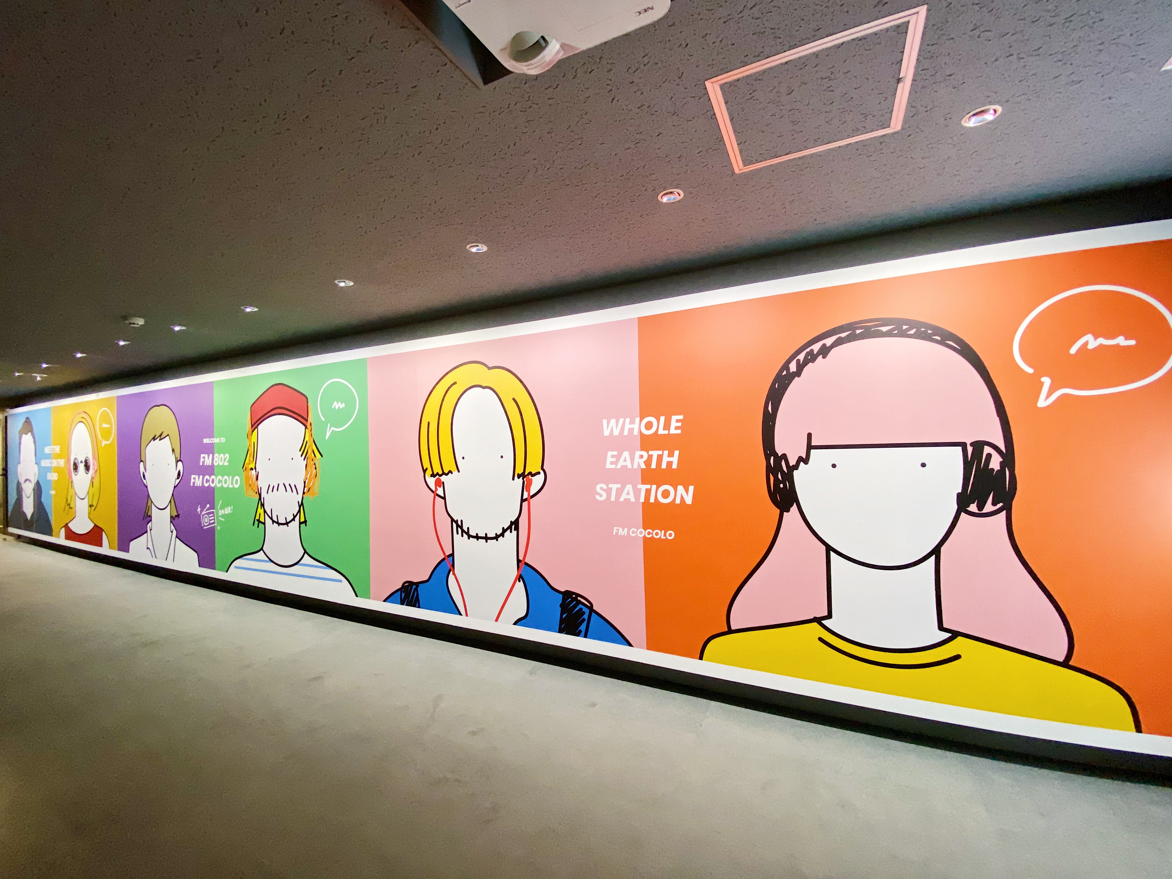 I worked on a 12-meter-long art wall at the entrance of FM802 and FM COCOLO, two radio stations in Osaka.