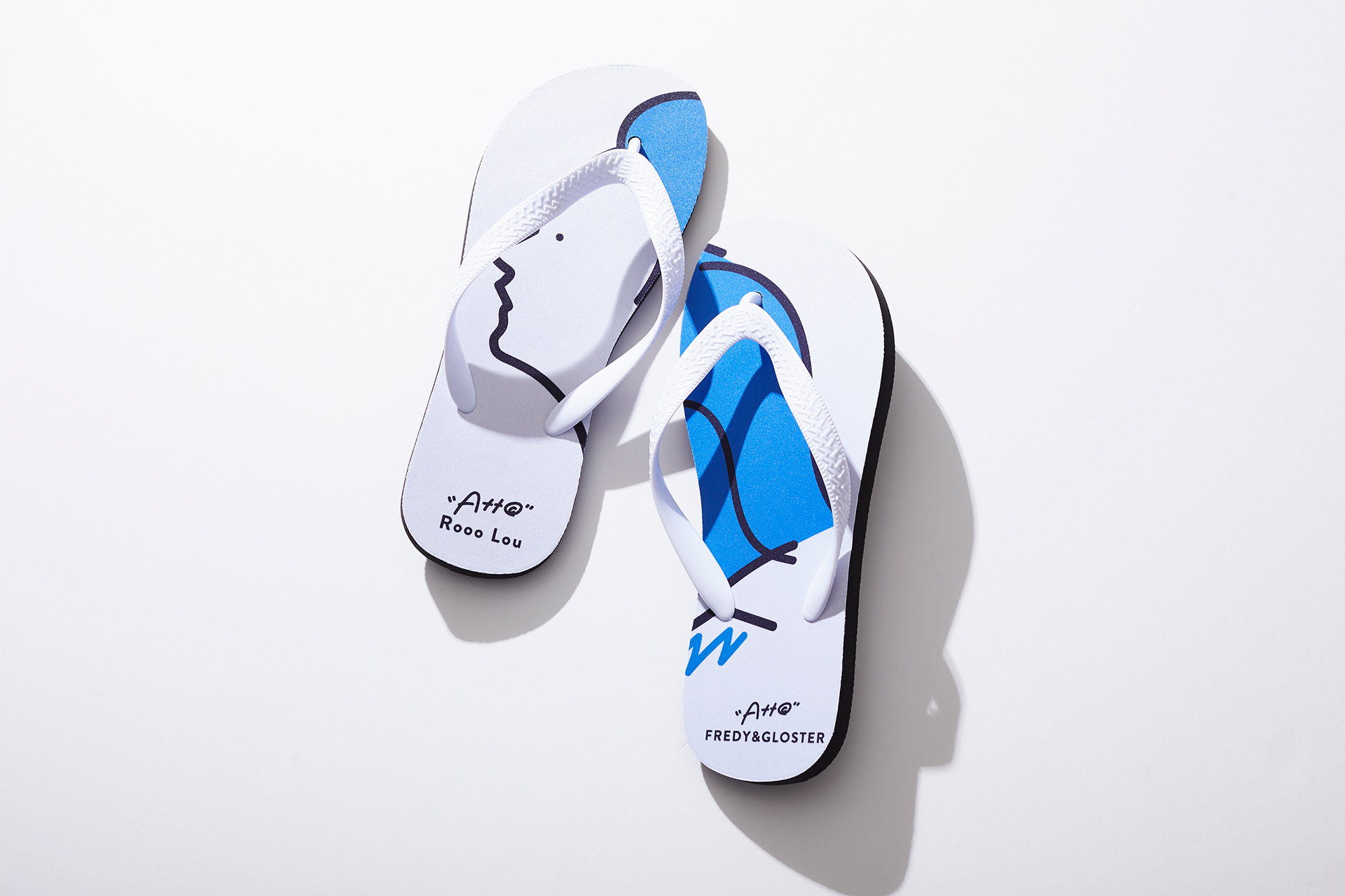 アパレルブランドFREDY&GLOSTERとコラボし、“あっという間に終わる夏なら、あっと驚く夏を楽しもう”=「@(ATTO)」をテーマに、刺繍によるTシャツコラボやPVCサコッシュ、ビーチサンダルなど夏にぴったしなグッズをデザイン。