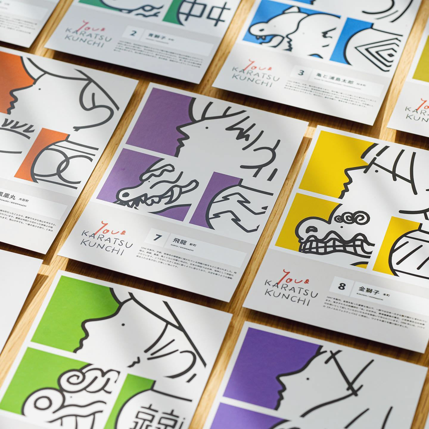 佐賀県・唐津の伝統のお祭り「唐津くんち」とのコラボレーション。12の曳山それぞれにデザインし、Tシャツやマグ、ポストカードなどのアイテムを展開していきました。