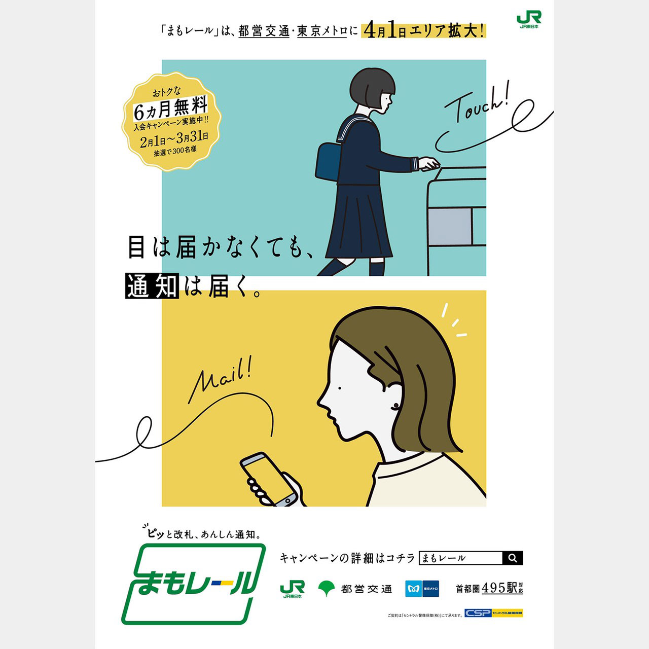 2020年4月1日からJR東日本、東京メトロ、都営交通など495駅に対象エリアが広がる、子供見守りサービス「まもレール」のリブランディングビジュアルを担当。