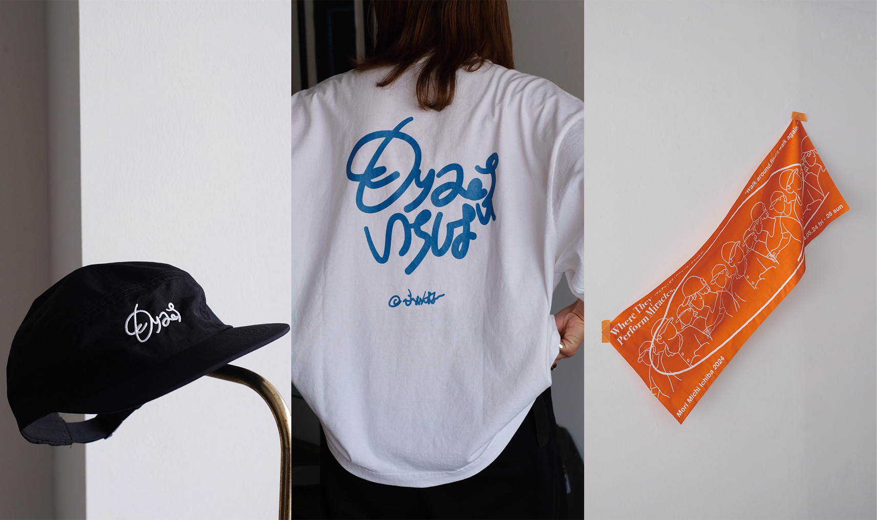 2020年から出店している森道市場 2024 LIMITED STOREのための、Tシャツ、手拭い、キャップデザイン。
